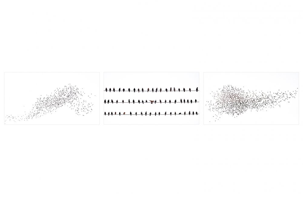 Captured in Dunedin. Thousands of Starlings & a few Sparrows gather at dusk. Starting with a single bird lift off, they all follow in coordinated patterns to roost.